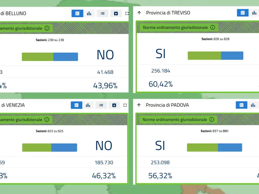 Si sono chiuse alle 15 le urne del referendum sulla Giustizia: in Veneto e Fvg vince il sì, il Comitato: «L’Italia è divisa». Affluenza molto alta, hanno votato due cittadini su tre