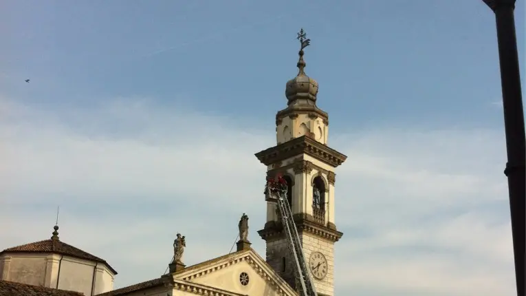 Ore 18.30. Controllo statico a Battaglia, caos in statale. I Vigili del Fuoco hanno eseguito un controllo statico sul campanile della chiesa di Battaglia, che si affaccia sulla statale. A causa della presenza dell'auto-gru per il controllo, sulla strada si è formata una lunga coda in entrambe le direzioni. Il traffico ha subito un pesante rallentamento e molti automobilisti sono rimasti in coda anche per più di un'ora.