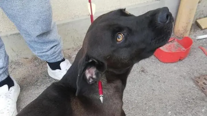 FONTANIVA. Trafitto da una freccia sparata da una balestra, la carne attraversata da dentro a fuori subito dietro la testa: si è salvato miracolosamente Aaron, uno splendido cane dal pelo liscio e nerissimo e dagli occhi dolci e vivaci. Il povero animale è stato preso letteralmente di mira da qualche violento armato di freccia, che lo ha colpito nella notte di Pasqua, tra sabato e domenica.
