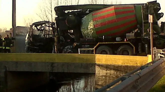 Camposampiero, autobotte a fuoco alla calcestruzzi Biasuzzi