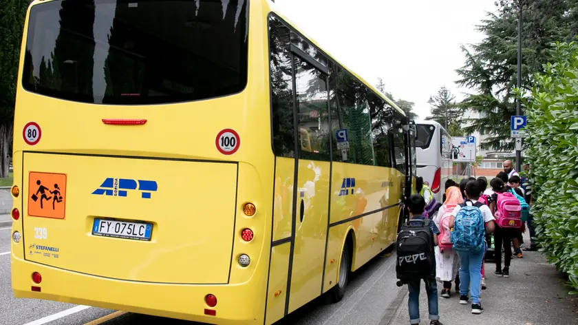 Studenti salgono a bordo di uno scuolabus