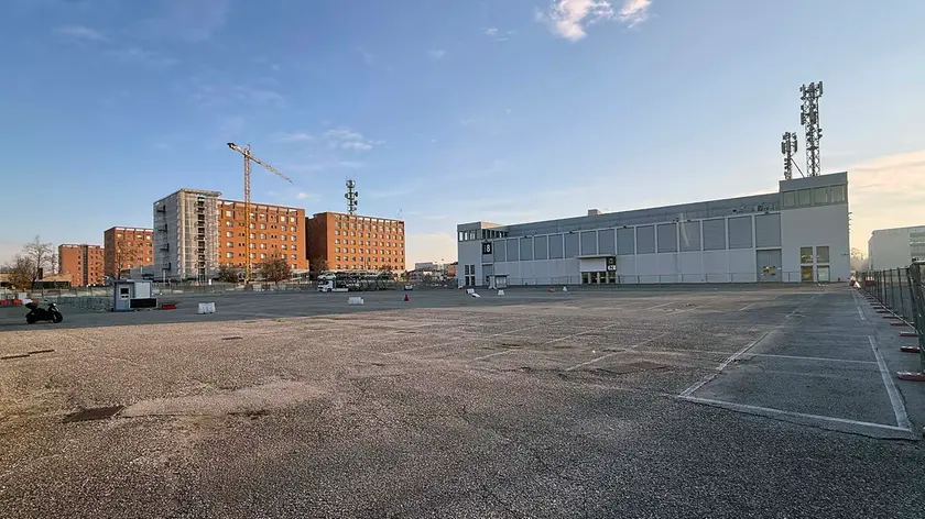 L’area dietro il padiglione 8 usata come parcheggio dove potrebbero sorgere i laboratori dell’università