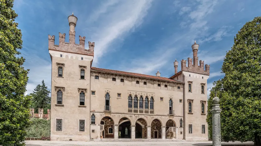 THIENE (VICENZA). Di un castello ha l’imponenza e le merlature ghibelline. Di un palazzo veneziano ha la leggerezza e la grazia tipicamente gotiche. Della villa veneta ha la concezione che in seguito fu elaborata da Palladio: un’azienda agricola che è anche uno status symbol; una sfarzosa dimora di campagna destinata a diventare quel che la successiva “civiltà delle ville” definì luogo di delizie. Comunque si cerchi di inquadrarlo, il Castello di Thiene (Palazzo Porto-Colleoni-Thiene) sfugge alle definizioni, per la sua unicità.