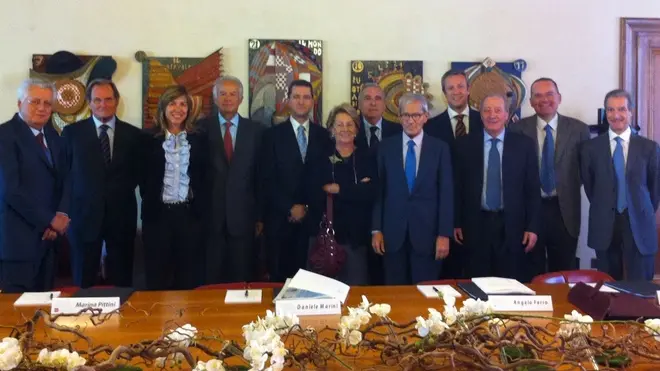 Nella foto il nuovo consiglio direttivo di Fondazione Antonveneta. Mario Carraro è stato riconfermato presidente, assieme a Bruno Bianchi, direttore generale. Vice Presidente è Ernesto Rabizzi, attuale presidente di Banca Antonveneta. Quattro le nuove nomine: Guglielmo Bedeschi, Anna Maria Chieco Bianchi, già direttrice del Museo Atestino, Daniele Marini, associato di Sociologia del lavoro a Padova e Marina Pittini delle Ferriere Nord di Osoppo. Riconfermati i consiglieri Antonio Cortellazzo ed Angelo Ferro. Il Collegio dei Revisori è formato da Pietro Fabretti (presidente), Leopoldo Rossi Chauvenet ed Alberto Dalla Libera (revisori effettivi).