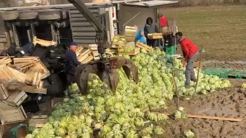 Camion carico di verdura finisce fuori strada: tutti in fila per i cavolfiori gratuiti