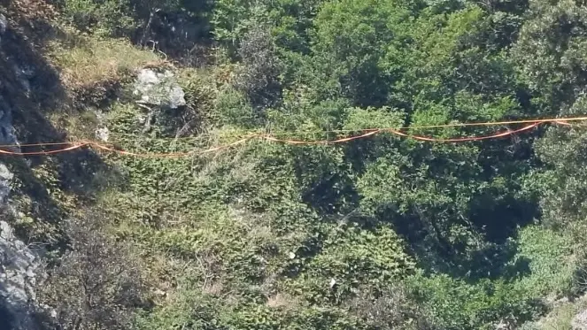 Corda da slackline scoperta dai carabinieri forestali tra le pareti del Rocca Pendice, nel Parco dei Colli Euganei. Attivati Comune, Parco ed Enac per i possibili rischi alla sicurezza aerea e alla nidificazione del falco pellegrino