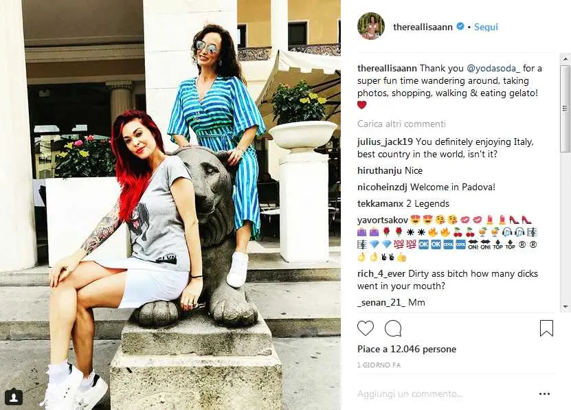 I video continuano con i fan che la fermano e con una tappa all’ufficio postale di corso Garibaldi. Infine Lisa torna a Palazzo Moroni, commentando l’opera “L’Italia in croce” di Gaetano Pesce esposta lì fuori, fermandosi al Pedrocchi per un aperitivo e inquadrando la festa di laurea di un ignaro neodottore. Il giorno seguente, venerdì, ha visitato il Prato della Valle mentre sui social e nelle chat i fan padovani si sono scatenati nel descrivere l’incontro con la loro pornostar preferita.