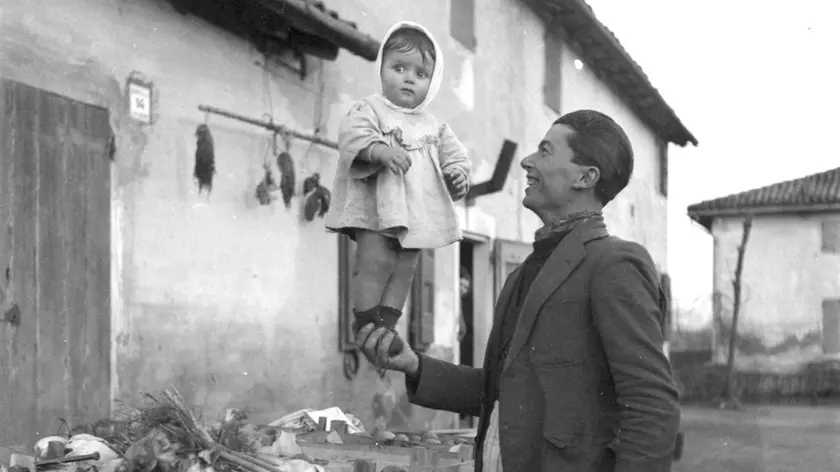 (ANSA) - BOLOGNA, 03 DIC - Dalla prima comunione di alcune bimbe a una cucina dove una signora fa la sfoglia mentre la figlia cuce a macchina; ma anche un barbiere, un calzolaio, una falciatrice, un fruttarolo che gioca con la sua bimba, e una partita a scopa tra amici per strada. E poi, tanti scatti di mondine in posa a gambe scoperte a imitare e forse a sognare l'immenda Silvana Mangano del film Riso amaro del 1959. Sono alcune delle 190 immagini della mostra "Giuseppe Pezzini. Fotografo ambulante" che la Cineteca di Bologna presenta alla Galleria Modernissimo dal 3 dicembre all'1 febbraio 2026 curata da Elena Correra e Giuseppe Savini. Per la prima volta viene esposta una selezione dell'enorme archivio appena acquisito dalla Cineteca: 200mila negativi che raccontano oltre quarant'anni di lavoro nelle campagne tra Bologna e Ferrara a fianco del fiume Reno. La mostra raccoglie fotografie scattate tra il 1935 e il 1952, offrendo lo sguardo unico di Pezzini sul mondo agricolo della "Bassa": "buona parte, dunque, del periodo fascista e della guerra, anche se entrambe quasi non si vedono negli scatti di questo singolare fotografo di campagna, un raccontatore di storie che restituisce un mondo come raramente lo abbiamo visto", ha spiegato il direttore della Cineteca, Gian Luca Farinelli. Dopo l'apprendistato in uno studio fotografico ferrarese, Pezzini ottenne nel 1935 la licenza da fotografo ambulante e nel 1938 aprì il suo primo negozio-laboratorio a Malalbergo. Da quella bottega partiva ogni giorno in bicicletta per ritrarre braccianti, mondine, operai e piccoli commercianti dei borghi rurali, spesso in formato foto tessera. Con una macchina a soffietto 6x9, poi affiancata da una poù professionale Rolleiflex 6x6, compose ritratti in cui spesso compare la sua "firma": l'ombra del fotografo e del suo cappello. Rientrato dalla guerra nel 1945, trovò il negozio distrutto e ne aprì uno nuovo, passando dal lavoro in bicicletta al ciclomotore. La società cambiava rapidamente, così Pezzini aggiornava il suo mestiere, fino al trasferimento dell'attività ad Altedo nel 1952. (ANSA).