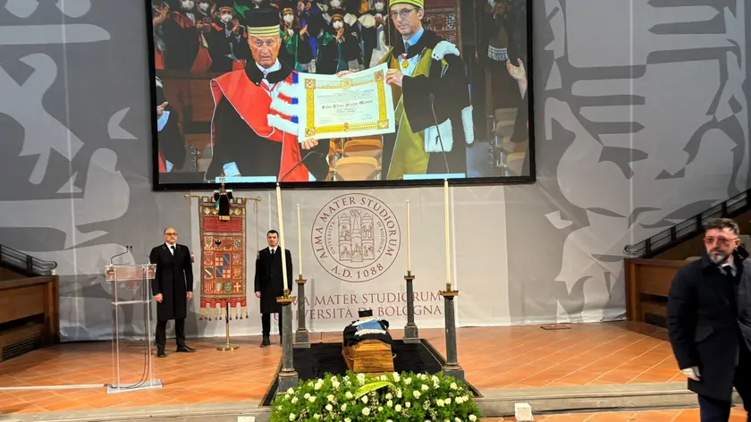 - BOLOGNA, 30 MAR - L'aula magna di Santa Lucia dell'Università di Bologna è gremita per le esequie accademiche del magnifico rettore Fabio Alberto Roversi-Monaco, morto venerdì a Bologna all'età di 87 anni. A dare l'ultimo saluto a Roversi-Monaco, alla guida dell'Università di Bologna dal 1985 al 2000, ci sono il professor Romano Prodi, il capogruppo alla Camera di FdI Galeazzo Bignami, il presidente della Regione, Michele de Pascale e la vicesindaca di Bologna, Emily Clancy. In prima fila sono sedute le figlie Maria Giulia, Francesca, Maddalena e Camilla e la moglie di Roversi-Monaco. Fino alle 14 è possibile rendere omaggio alla salma. Il funerale poi si terrà alle 14.30 nella cattedrale di San Pietro.
