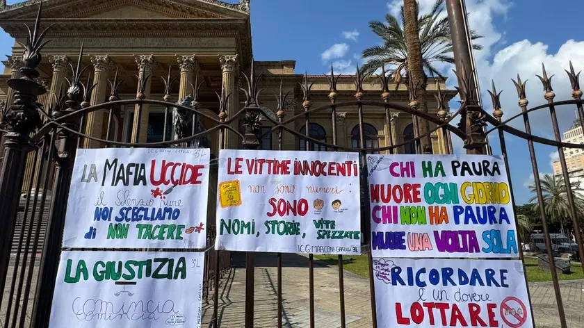 (ANSA) - PALERMO, 21 MAR - Studenti dai 6 ai 18 anni, provenienti da 31 scuole di Palermo e provincia, hanno partecipato questa mattina, sulla scalinata del Teatro Massimo di Palermo, alla trentunesima giornata della memoria e dell'impegno in ricordo delle vittime innocenti di mafia, organizzata dalla Rete per la cultura antimafia, insieme a Libera, associazioni nomi e numeri contro le mafie. "Ad aderire sono stati 1500 studenti. Alcuni di loro hanno letto, in silenzio, gli oltre mille nomi di vittime di mafia - spiega il preside dell'istituto Saladino di Palermo, Giusto Catania - è stato un momento emozionante, molti di loro non erano ancora nati quando si sono verificate le stragi di mafia. Lo scopo della scuola è quello di portare avanti un'azione pedagogica nel ricordo delle vittime di mafia. La scuola deve essere il centro di una comunità educante, dove si coltivano relazioni sane e si costruiscono alternative concrete ai modelli mafiosi". Gli studenti, per l'occasione, hanno preparato anche dei cartelloni e li hanno appesi nelle ringhiere del teatro: "La mafia uccide, il silenzio pure. Noi scegliamo di non tacere", "Le vittime innocenti non sono numeri", "Ricordare è un dovere, lottare è una scelta". (ANSA).