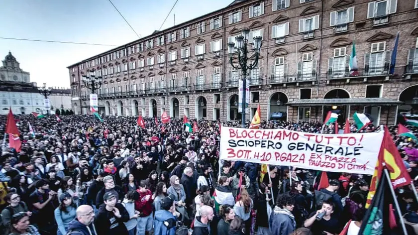 (ANSA) - TORINO, 02 OTT - Sono almeno diecimila i pro Palestina che si sono ritrovati in piazza Castello, davanti alla Prefettura a Torino e sono partiti in corteo verso le 19.15. È l'ultimo degli appuntamenti di una giornata di mobilitazione contro il blocco israeliano alla Global Sumud Flotilla. "Gaza ha vinto nonostante il dolore" si legge nello striscione - che apre il corteo - dell'Associazione dei palestinesi in Italia. "Dobbiamo bloccare la catena di morte che parte anche da qui", dicono al microfono. "Questa non è più solo una battaglia contro il genocidio, ma contro questo governo. Un governo che usa i nostri soldi per finanziare la guerra e non per la sanità. Ieri ci hanno dato dei violenti, questa è la loro violenza di fronte al genocidio", aggiungono. (ANSA).