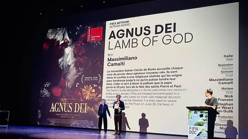 (ANSA) - PARIGI, 31 GEN - C'è Agnus Dei, film presentato all'ultima Mostra del Cinema di Venezia, tra le opere premiate ieri a Biarritz, sulla costa atlantica della Francia, a conclusione dell'8/a edizione del Festival Fipadoc, appuntamento sempre più autorevole del Cinema du réel internazionale. Fra i premi attribuiti nella rassegna di film-documentari spicca il premio Michel Mitrani come miglior opera prima o seconda fra tutte le competizioni. andato ad Agnus Dei di Massimiliano Camaiti. Il documentario del regista romano, presentato a Venezia, racconta una curiosa tradizione cattolica che si ripete a Roma dal VI secolo D.C.. Ogni anno, due agnelli appena nati, vengono benedetti e affidati ad una monaca del monastero di Santa Cecilia per essere accuditi e cresciuti fino al giorno della loro tosatura. Dalla lana verrà ricavato il Pallio, ornamento sacro che, come un agnello, viene poggiato sulle spalle del Papa e degli arcivescovi metropoliti. Il premio assicura ad Agnus Dei una diffusione su France Télévisions, la tv pubblica francese. (ANSA).