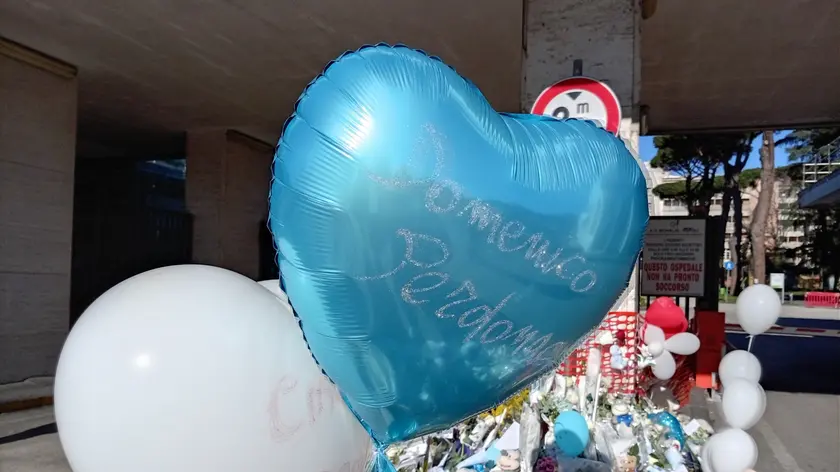 (ANSA) - NAPOLI, 22 FEB - Cittadini comuni, coppie di giovani fidanzati, padri con figli al seguito si stanno radunando all' esterno dell' ospedale Monaldi di Napoli per rendere omaggio al piccolo Domenico, il bimbo morto ieri a cui due mesi fa è stato trapiantato un cuore danneggiato. C'è chi lascia fiori con bigliettini di affetto, chi si ferma solo a pregare, chi scuote il capo incredulo davanti al dramma che si è consumato. Una ciclista non trattiene le lacrime. Al momento regna un silenzio irreale in una calda domenica assolata, interrotto solo dalle auto del personale che va a prendere servizio. Tanti i palloncini - spicca uno blu con la scritta 'Domenico, perdonaci' - fiori e pupazzetti di peluche che Napoli sta adagiando all'ingresso dell'ospedale. (ANSA).