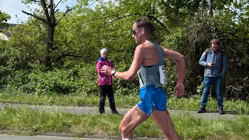 (ANSA) - ROMA, 26 APR - Alex Schwazer da record. A 41 anni, l'ex olimpionico azzurro ha vinto la maratona di marcia (42,195 km) chiudendo la gara internazionale valida per i campionati tedeschi in 3h01'55", stabilendo il primato italiano sulla distanza. (ANSA).