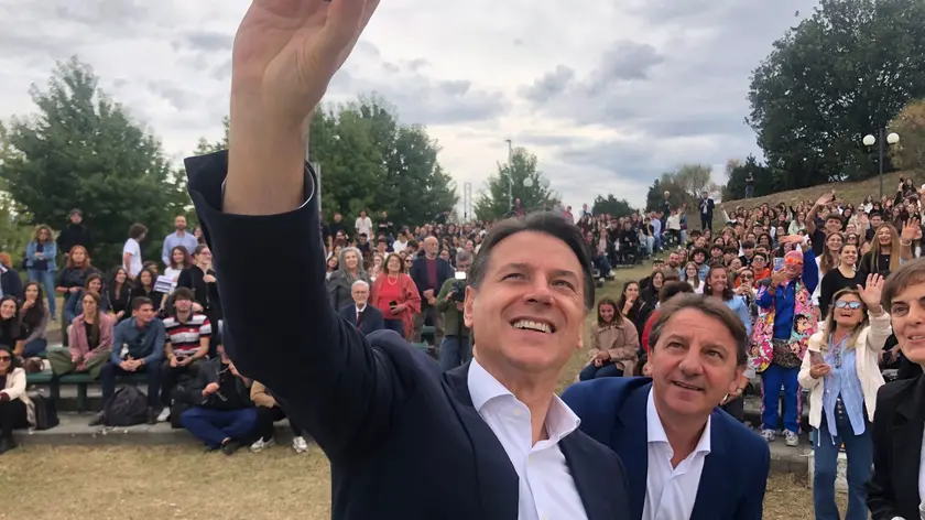 (ANSA) - COSENZA, 01 OTT - Il leader del Movimento 5 Stelle Giuseppe Conte ha incontrato, all'Università della Calabria, studenti e associazioni nel corso di una manifestazione per lo stop alla guerra a Gaza. Conte ha fatto un selfie con gli studenti e il candidato presidente della Regione del campo progressista Pasquale Tricico che ha inviato a Marco Croatti, senatore del Movimento sulla Flottiglia, come segno di vicinanza. (ANSA).