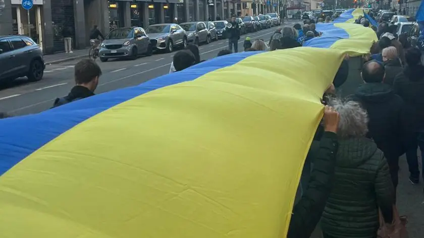 (ANSA) - TORINO, 26 OTT - Una bandiera di 50 metri con i colori giallo e blu è stata fatta sfilare oggi per le vie del centro storico di Torino in segno di solidarietà verso l'Ucraina. Circa duecento le persone che hanno preso parte alla manifestazione. All'iniziativa, promossa dalla Cut - Comunità ucraina di Torino, hanno aderito Più Europa, Europa Radicale, Azione, Volt, partito liberaldemocratico. "Mentre a casa risuonano le sirene - hanno detto gli organizzatori - e i nostri cari vivono senza luce, senza calore e senza pace, noi scendiamo per le strade di Torino per dire che l'Ucraina è viva". Igor Boni, di Europa radicale, ha rilanciato l'appello - già presentato lo scorso 21 ottobre in Senato - per uno 'scudo antimissile' per l'Ucraina. (ANSA).