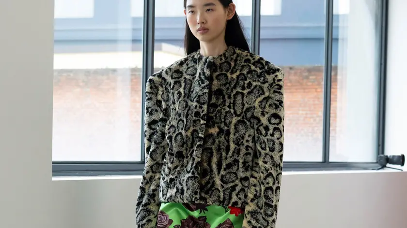 (ANSA) - MILANO, 28 FEB - Vagabondare tra musei e gallerie milanesi, incontrando la mostra di Stanislao Lepri da Tommaso Calabro, lo sguardo felino e surreale di Leonor Fini, l'astrazione atmosferica di Marina Rheingantz e la tensione intima dei dipinti di Amanda Wall, Shadow Boys e Nightstand, ha ispirato la collezione Msgm per il prossimo inverno, che ha sfilato alla fondazione Ica, che ha accolto per la prima volta uno show della Milano Fashion Week. La collezione si sviluppa proprio attorno all'idea del vagabondare, con gli archetipi dello sportswear e i classici rivisti in nuova luce, con colori come verde lime, arancio sole, ultravioletto, lampone, cioccolato fondente e tessuti come velluto tapestry maculato, lana compatta, tweed pressati e gabardine militare che incontrano nylon tecnico stropicciato, Tyvek metallico e argento pressato. (ANSA).
