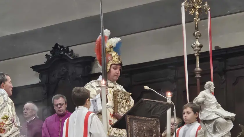 (ANSA) - CIVIDALE DEL FRIULI, 06 GEN - E' stata celebrata oggi la solenne Messa dello Spadone, celebrazione che da 659 anni si svolge il giorno dell'Epifania, rito unico nel mondo cattolico, celebrato nella Basilica di Santa Maria Assunta, che intreccia fede, storia e identità civile, rievocando la coesistenza del potere spirituale e temporale alle origini del Patriarcato di Aquileia. La celebrazione prende il nome dallo spadone patriarcale, lo stocco appartenuto al patriarca Marquardo von Randeck, che nel 1366 entrò in città. Durante la liturgia, recitata e cantata in latino secondo l'antica tradizione aquileiese -cividalese, la spada è brandita dal diacono in più momenti verso il clero e i fedeli, non come gesto di benedizione ma di saluto, in simbolico equilibrio tra autorità religiosa e civile. Il parroco monsignor Livio Carlino, che ha officiato la messa, nell'omelia ha messo in guardia contro i "novelli messia" e le verità usate per rafforzare il potere, denunciando l'illusione che la pace possa essere garantita dal riarmo. "Solo il disarmo reale, ha detto può aprire la strada a dialogo e riconciliazione, mentre nazionalismo e giustificazione della violenza sono una vera e propria blasfemia". Toccato anche il tema della sanità pubblica, ricordando l'impegno di chi ha difeso il presidio ospedaliero locale e testimoniando luci e ombre del sistema sanitario. L'auspicio è che le strutture "diventino sempre più luoghi di accoglienza e umanità, mettendo al centro la persona, soprattutto il povero e il fragile". Come da tradizione, alla funzione religiosa è seguita la rievocazione storica dell'ingresso del Patriarca a Cividale: un corteo medievale, con centinaia di figuranti. (ANSA).