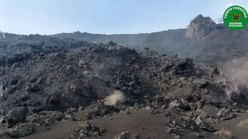 (ANSA) - CATANIA, 03 GEN - Resta confinata nella desertica Valle del Bove, distante da centri abitati e infrastrutture, la colata che emerge dalla bocca apertasi a quota 2.100 metri sull'Etna. Secondo stime del personale del corpo Forestale regionale, che ha eseguito un nuovo sopralluogo, il fronte lavico, debolmente alimentato, sarebbe arrivato intorno a quota 1.380 metri, è largo 100 metri e alto 15, e percorre due metri l'ora. (ANSA).