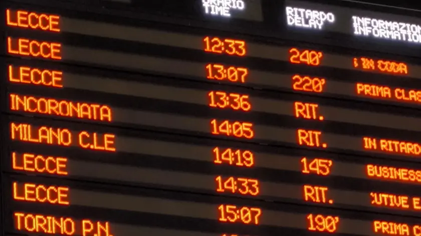 (ANSA) - FOGGIA, 02 GEN - Grandi disagi nella stazione ferroviaria di Foggia per la circolazione rallentata lungo la linea Bari-Foggia a causa di un inconveniente tecnico alla linea elettrica che ha provocato prima la sospensione della circolazione ferroviaria, poi dalle 17,30 Rfi ha reso noto che la circolazione è fortemente rallentata e ancora in serata si registrano ritardi fino a 330 minuti. I disagi sono cominciati alle 12 dopo la caduta di cavi elettrici lungo i binari sulla tratta tra Orta Nova ed Incoronata. "Un 2 gennaio fantozziano" hanno detto alcuni utenti presenti nella stazione ferroviaria del capoluogo dauno. "I ritardi accumulati da alcuni treni - il commento in un passeggero in attesa - sono arrivati anche a 240 minuti. Davvero una situazione difficile". Complessivamente, stando agli ultimi aggiornamenti sulla circolazione ferroviaria, sono otto i treni Regionali cancellati completamente o solo in alcune tratte, mentre altri 13 convogli direttamente coinvolti nei disagi hanno registrato rallentamenti in alcuni casi fino a 330 minuti, come per il Lecce-Milano partito alle 8.43 dal capoluogo salentino e il cui arrivo nel capoluogo lombardo è previsto dopo le 3 anziché alle 21.40. (ANSA).