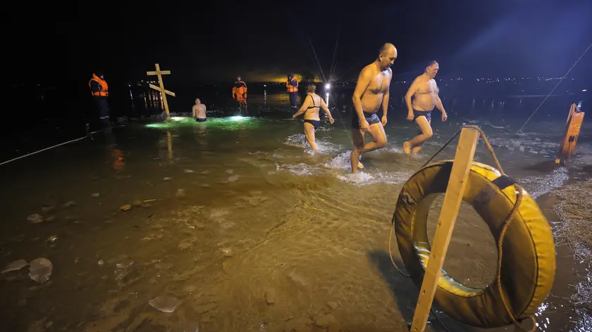 (ANSA) - ROMA, 18 GEN - I militari della sesta Armata del gruppo militare russo "Nord" hanno partecipato alla benedizione dell'acqua e al bagno dell'Epifania in una fonte battesimale dedicata a San Giuseppe di Volotsk, precedentemente costruita per i residenti locali. Lo scrive l'agenzia Ria Novosti il ;;vice comandante del battaglione chiamato Region. "Siamo stati invitati perché i militari della sesta Armata erano direttamente coinvolti nella costruzione di un fonte battesimale in onore di San Giuseppe di Volotsk, patrono del servizio logistico delle Forze armate russe ", ha spiegato Region. Anche il presidente bielorusso Alexander Lukashenko ha preso parte al tradizionale bagno dell'Epifania in una buca di ghiaccio, secondo le immagini diffuse dal canale Telegram "Pool Pervogo", affiliato al servizio stampa presidenziale bielorusso. "La tradizione è quella di immergersi in una buca nel ghiaccio", ha riferito il canale, sottolineando che la temperatura durante la nuotata del presidente era di -15 gradi Celsius. Nel video, Lukashenko, con indosso una lunga camicia bianca, si tuffa in una fontana scavata nel ghiaccio di uno stagno ghiacciato. Il suo cane Umka, uno Spitz, era con il presidente. (ANSA).