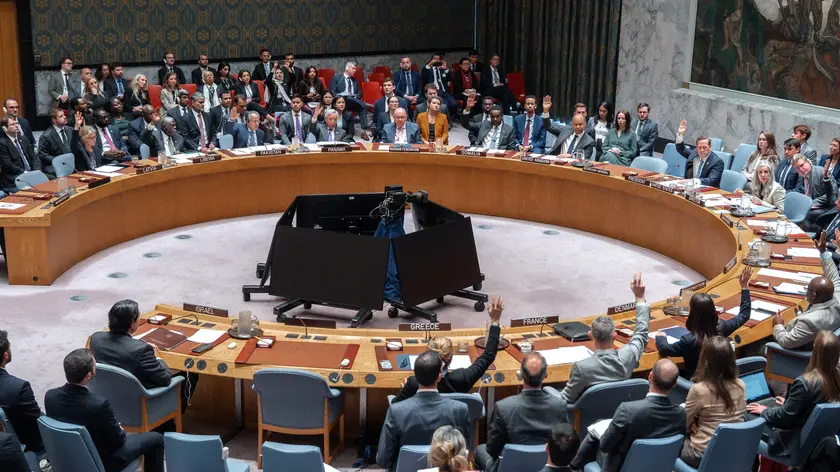 (ANSA) - NEW YORK, 07 APR - Il Consiglio di Sicurezza della Nazioni Unite si appresta a votare la bozza di risoluzione elaborata dal Bahrein sulla sicurezza nello Stretto di Hormuz. Il testo annacquato chiede lo sblocco della cruciale rotta marittima: un esito ben lontano dall'obiettivo iniziale dei Paesi del Golfo promotori, che miravano a ottenere l'autorizzazione per liberare lo Stretto con la forza. La bozza finale non menziona più l'autorizzazione all'uso della forza, nemmeno a scopo difensivo. "Fallire nell'agire oggi porta gravi conseguenze per il mondo e l'umanità", ha avvertito prima del voto il ministro degli Esteri del Bahrein, Abdullatif bin Rashid Al Zayani. (ANSA).