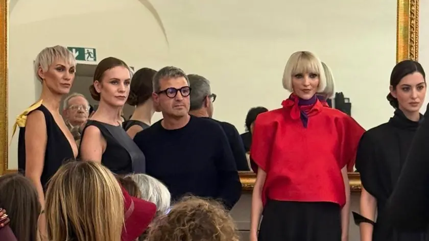 (ANSA) - ROMA, 12 APR - Il mondo di Vittorio Camaiani sfila nella Galleria del Cardinale Colonna a Palzzo Colonna, a Roma, tra le sculture contemporanee in acciaio di Andrea Borga. La nuova collezione Spring/Summer 2026 "dello stilista di San Benedetto del Tronto è intitolata infatti "Senza Confini" e viene svelata con una sfilata nella settecentesca dimora nobiliare, che festeggia il quarto anno della sua rinnovata gestione, affidata alla direzione eventi della giornalista Elena Parmegiani. Con la nuova collezione Camaiani vuole raccontare la sua fascinazione per colori, forme e atmosfere delle diverse culture del mondo, unite dai valori della bellezza e dell'eleganza, e dai viaggi. Nonostante i tempi storici dominati dai conflitti, Camaiani immagina la moda come il fil rouge che potrebbe unire, mettere a confronto e raccontare le diverse identità dei popoli. Il mio sogno è quello di "unire il mondo con un tessuto" dice il designer. La collezione è ricca di spunti estetici, unificati dalla visione dello stilista, che da sempre afferma di voler vestire una donna pratica ma sofisticata, una viaggiatrice, che ha bisogno di un guardaroba adatto alle diverse occasione del giorno e della sera, ma che non rinuncia ai tessuti ricercati e al piacere di indossare nuovi colori. I continenti vengono raccontati omaggiando i simboli dell'estetica delle varie culture, attraverso linee, palette cromatiche, consistenze dei tessuti. L'Oceania viene rappresentata in abiti colorati di viola, verde, giallo, in fantasie floreali che sembrano pennellate di Gauguin, in linee balloon, in top in lino e chiffon, portati su pantaloni in lino dalla foggia morbida e su lunghe gonne in taffetà. Camaiani rende omaggio all'America con jeans comodi, con i colori della bandiera americana sui capi, con stelle che decorano il denim di pantaloni, shorts, bermuda e tute, abbinate a polo sciolte e a camicie in seta strizzate in vita da foulard. L'Africa viene evocata dalle sue tipiche fantasie colorate, dallo stile coloniale delle giacche sahariane e con una palette cromatica che sfodera tutte le nuances dei marroni, dei beige, del fango e dell'ocra su organza in seta, lini e cotone batik. Ai piedi non possono poi mancare i sabot a stampa animalier realizzati da Lella Baldi su disegno di Camaiani. L'Asia è nei capi dalle linee pulite, i colli a kimono, gli obi che segnano la vita, le giacche con colli alla coreana, cinte e alamari che contrastano con capi a tinta unita. E ancora fantasie floreali ed astratte su cotone e lino nei toni del rosa antico, del viola e del verde. Infine, l'Europa raccontata nel bianco e nero del cinema neorealista, con un tocco di rosso che simboleggia la passione dello stilista per la moda. Le linee dei capi sono maschili. Le modelle portano soprabiti in seta double, giacche doppiopetto con bermuda, cravatte. Per la sera sfilano long dress e tute in georgette, crêpe de chine e faille in seta. Una tuta in crepe nera con profili bianco in contrasto è abbinata ad un effetto felpa balloon con cappuccio in organza a pois. (ANSA).