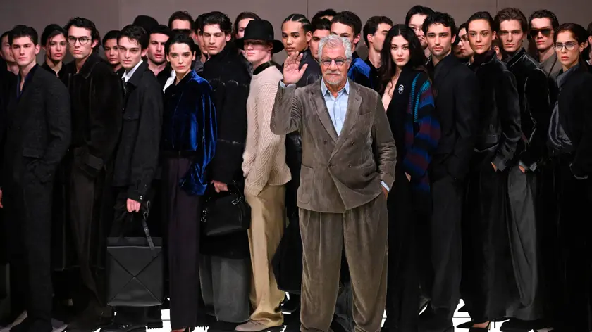 (di Gioia Giudici) (ANSA) - MILANO, 19 GEN - "Giorgio mi avrebbe detto 'state imparando'" scherza Leo Dell'Orco al suo debutto solista come direttore creativo di Armani uomo, subito dopo la sfilata che ha richiamato a Milano ospiti come Ricky Martin, Luca Marinelli e Gianni Morandi. Un'occasione speciale festeggiata in via Borgonuovo, subito dopo lo show, con un pranzo in casa dove Dell'Orco ha ricevuto gli ospiti della sfilata insieme al nipote Gianluca, con cui è uscito a salutare il pubblico a fine show. "Siamo riusciti a fare una cosa un po' diversa e non era facile" spiega Dell'Orco che, dopo aver lavorato al fianco di Giorgio Armani per 40 anni, ora ha preso le redini dell'azienda, di cui dirige il Cda. Pur nella coerenza di stile, come richiesto dallo stesso Armani nel suo lascito, Dell'Orco - direttore creativo delle linee uomo - ha voluto lasciare la sua impronta su questa collezione per il prossimo inverno. Un segno 'cangiante' - titolo della proposta che ha chiuso oggi la fashion week - e colorato, con toni come il melanzana a fare da filo conduttore della stagione fredda. "Lui sui colori era un incubo - ricorda oggi Dell'Orco - era sempre per il beige. Io ho fatto miei dei colori che Giorgio avrebbe tagliato, sul resto sono stato in linea senza fare cose esagerate". Ma "a un certo punto devi trovare il coraggio di uscire", risponde a chi gli chiede come abbia vissuto l'emozione della prima uscita in solitaria, senza l'uomo di cui l'azienda porta il nome. Dell'Orco lo ha fatto all'insegna della disinvoltura, dando nuovi riflessi 'cangianti' alla coerenza creativa della maison, grazie all'uso discreto ma deciso del colore, dal verde oliva al viola melanzana che spiccano nella sinfonia di grigi, beige, neutri, neri e blu intensi. Toni che prendono vita nella materia grazie alla mano del velluto, del crêpe e della ciniglia, amalgamati ai cashmere garzati, alle lane battute e alle pelli opache. Le linee sono tutte fluide e disinvolte, con le giacche dal collo alla coreana, i cappotti avvolgenti abbottonati di sbieco, i pantaloni con le pinces e le zip sulle tasche, le giacche-camicia da portare con disinvoltura con la cravatta. Un'idea di eleganza facile che accompagna anche l'abbigliamento da neve e la maglieria, morbida e materica, dal pull di angora al cardigan a jacquard geometrici - declinato al maschile e femminile - nato dalla collaborazione con Alanui. Un gioco di contrasti di lucido e opaco che coinvolge anche i tessuti, con il montone dalla mano velluto o la seta che imita il denim, e dilaga nella sera all'insegna dell'iridescente velluto. (ANSA).