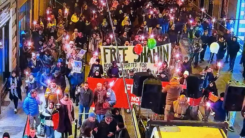(ANSA) - TORINO, 27 NOV - Scandendo ad alta voce in coro la richiesta "Free free Shahin", a Torino 400 persone sono partite in corteo dalla centrale Piazza Castello in direzione della via Pietro Micca. Alla testa del serpentone illuminato dalle fiaccole compare un grande striscione sul quale si legge: "Free Shahin Nobody Deported For Supporting Palestine'. La fiaccolata che sta attraversando il centro di Torino è stata organizzata in solidarietà e contro l'arresto di Mohamed Shahin, il 47enne imam della moschea di via Saluzzo, di origini egiziane ma in Italia da vent'anni, espulso perché ritenuto dalle autorità di polizia "una minaccia concreta, attuale e grave per la sicurezza dello Stato". L'accaduto, diventato un caso politico, vede le opposizioni sulle barricate per chiedere al governo di bloccare l'iter verso il rimpatrio. Shahin attualmente si trova nel Cpr di Caltanissetta. In quanto oppositore di Al Sisi, ritiene di correre un grave pericolo in caso di rimpatrio e ha presentato domanda per il riconoscimento della protezione internazionale. (ANSA).
