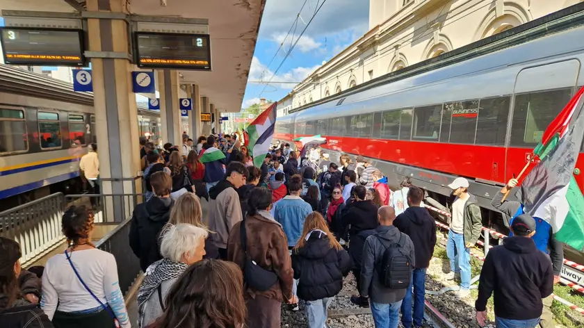 (ANSA) - PERUGIA, 03 OTT - Sospesa la circolazione dei treni alla stazione di Perugia dopo che i manifestanti in occasione dello sciopero generale hanno raggiunto lo scalo per poi invadere i binari. Diversi quelli che hanno percorso un tratto di ferrovia con bandiere e lanciando slogan. Le forze di polizia presidiano la zona e al momento non si registrano incidenti. (ANSA).