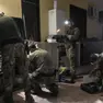 Manifestanti con bandiere Palestina lanciano slogan