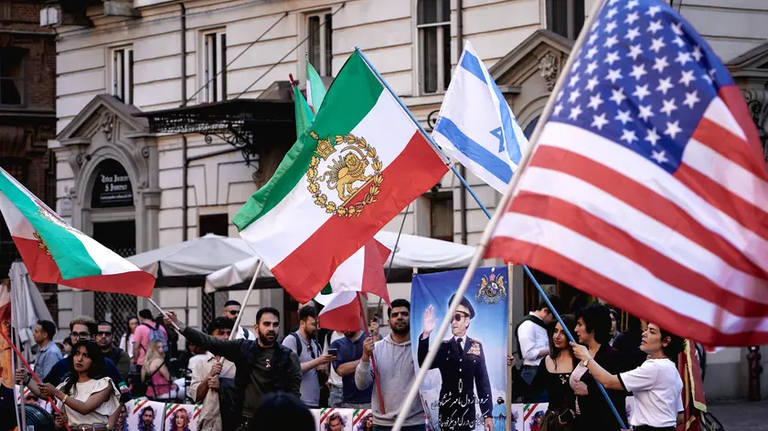 Iran, a Torino manifestanti con bandiere di Israele e Usa