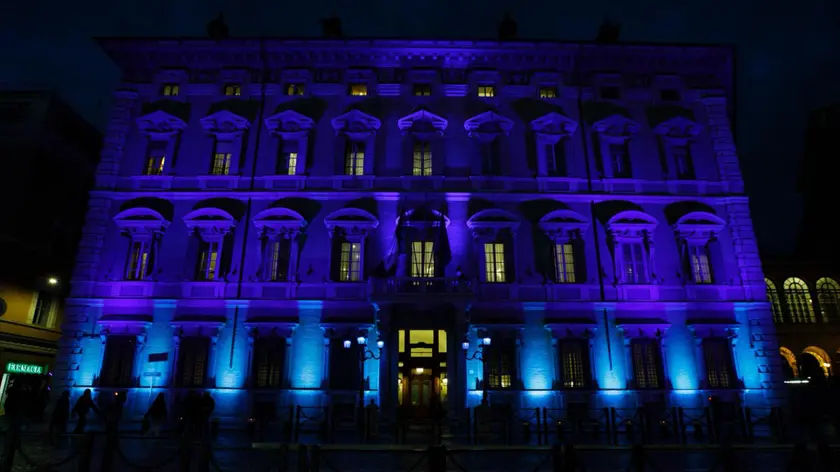 La facciata del Senato si illumina di blu per le vittime civili delle guerre