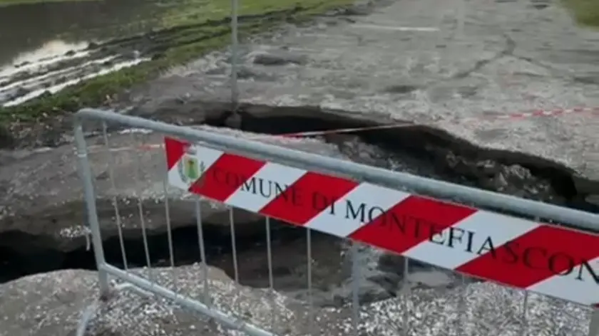Maltempo, si apre una voragine su una strada nel Viterbese