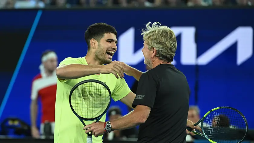(ANSA) - ROMA, 14 GEN - Tra risate e pacche sulle spalle anche Carlos Alcaraz esce al torneo esibizione Million Dollar 1 Point Slam in corso a Melbourne. Lo spagnolo ha perso con la greca Maria Sakkari ai quarti. Decisiva una palla corta mandata in rete dal murciano che dopo l'errore si butta a terra e ride. Intanto Jordan Smith, il dilettante che ha eliminato Sinner, raggiungendo i quarti ha vinto la macchina in palio per il non professionista andato più avanti nel torneo. (ANSA).