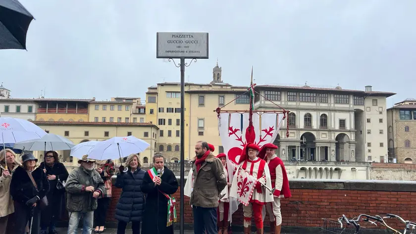 (ANSA) - FIRENZE, 26 MAR - Il Comune di Firenze ha intitolato una piazza a Guccio Gucci, il fondatore della famosa azienda di moda fiorentina che porta il suo nome, oggi di proprietà del gruppo francese Kering. L'area pubblica dedicata all'imprenditore, nato nel 1881 e scomparso nel 1953, è lungo l'Arno con accessi da lungarno Torrigiani e via dei Bardi, accanto a Ponte Vecchio e con vista sull'esterno degli Uffizi, dalla parte opposta del fiume. La cerimonia per la nuova denominazione è avvenuta questa mattina alla presenza dell'assessore alla toponomastica Caterina Biti e di Patrizia Gucci, bisnipote di Guccio Gucci (è figlia di Paolo e nipote di Aldo, figlio dell'imprenditore). "Diamo ufficialmente la denominazione piazzetta Guccio Gucci ad uno spazio pubblico che regala alle persone che lo vivono una delle viste più belle e caratteristiche di Firenze, lungo l'Arno, davanti agli Uffizi e accanto a Ponte Vecchio - ha detto l'assessora Caterina Biti - la storia di Guccio Gucci ha un'importanza primaria per Firenze, ha contribuito in modo significativo a rappresentare nel mondo lo stile della nostra città e dell'Italia, la creatività, il saper fare, la qualità delle produzioni, il senso del bello, e il valore e la dignità del lavoro''. Il testo della delibera per la denominazione dell'area toponomastica infatti recita come Guccio Gucci sia stato "imprenditore capace di trasformare una semplice pelletteria in una vera e propria leggenda del settore della moda in Italia e nel mondo". (ANSA).