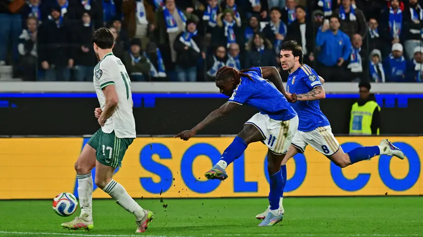 (ANSA) - BERGAMO, 26 MAR - L'Italia batte 2-0 l'Irlanda del Nord e va alla finale del play off per il Mondiale. I gol nel secondo tempo, all'11' di Tonali e al 35' di Kean. (ANSA).