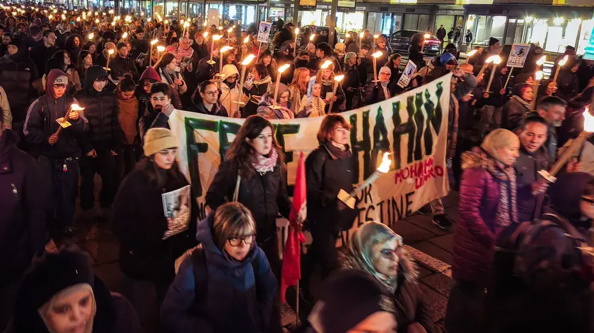 Presidio con fiaccolata questo pomeriggio davanti al Comune di Torino, in piazza Palazzo di Città, in solidarietà con Mohamed Shahin l'imam della moschea di San Salvario, colpito da un provvedimento di espulsione firmato dal ministro dell'Interno Matteo Piantedosi. Circa duecento persone si sono ritrovate per l'iniziativa convocata dal coordinamento Torino per Gaza. Il presidio si svolge in contemporanea con altre città come Genova, Modena, Ferrara e Napoli. "Free Shahin nobody deported for supporting Palestine", si legge in uno striscione con l'immagine dell'imam. "Chiediamo al sindaco Stefano Lo Russo di dire espressamente di liberare Shahin e che venga esposto lo striscione dal balcone del Comune - dicono al microfono - Shahin in questo momento si trova ancora al Cpr a Caltanissetta. Sappiamo che su Shahin non c'è nessuna ipotesi di reato, nessuna accusa di istigazione al terrorismo per le sue parole in piazza. La sua era solamente una libertà, quella di esprimere la propria opinione. Perché allora c'è un provvedimento di espulsione? Lui diceva come tutti noi basta la genocidio in Palestina". (ANSA).