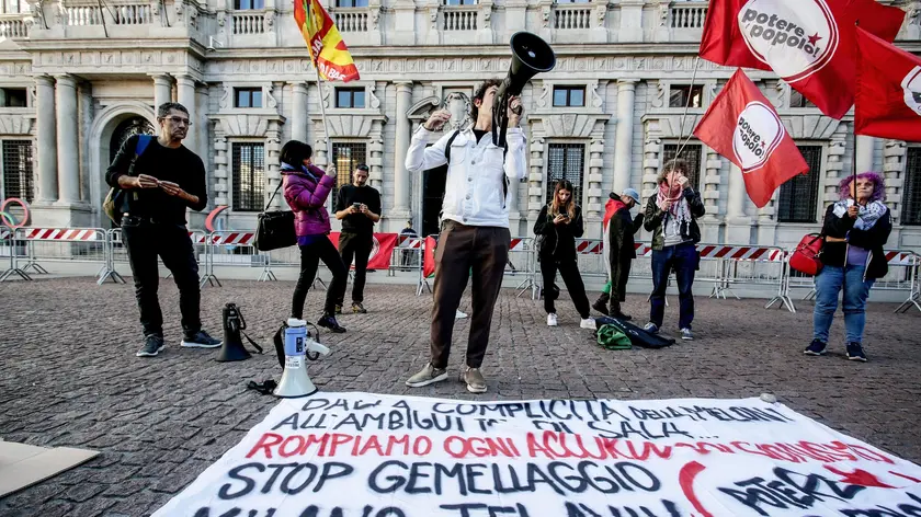 (ANSA) - MILANO, 13 OTT - Decine di attivisti e di manifestanti si sono radunati davanti a Palazzo Marino, sede del Comune di Milano, per chiedere l'interruzione dei rapporti con Israele e lo stop al gemellaggio con Tel Aviv. In piazza della Scala, 'ribattezzata' Piazza Gaza, sventolano bandiere della Palestina, di Potere al Popolo e dell'Usb. Il presidio si sta svolgendo senza particolari momenti di tensione, tranne quando una donna con la bandiera di Israele e il fiocco giallo, simbolo della liberazione degli ostaggi, si è avvicinata per sottolineare che oggi "è iniziata la pace". La donna è stata contestata dai presenti con la Digos che è dovuta intervenire per chiederle di allontanarsi. Due grandi striscioni esposti davanti Palazzo Marino recitano: 'Milano anti-sionista' e 'No gemellaggio' con la richiesta di sanzionare Israele e rompere tutti gli accordi. Proprio oggi in Consiglio comunale sarà discusso l'ordine del giorno presentato dal consigliere dei Verdi Carlo Monguzzi - e sottoscritto da buona parte dei consiglieri del Pd - che chiede di sospendere le collaborazioni con Israele e il gemellaggio con Tel Aviv. "Non si possono cancellare migliaia di morti - ha detto una attivista dal megafono -. Ben vengano gli accordi, ma si arrivi a una pace giusta in cui il popolo palestinese avrà diritto di esistere". (ANSA).
