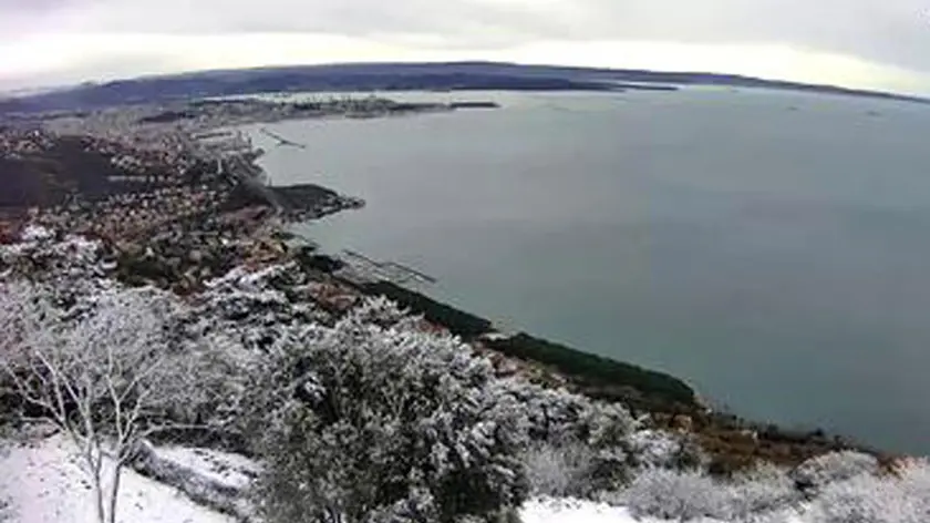 Primi fiocchi di neve a Trieste con bora e termometro in discesa