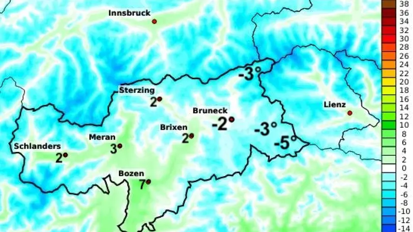 (ANSA) - BOLZANO, 02 OTT - La notte scorsa è stata finora la più fredda di questo autunno. In Val Pusteria si è registrato il primo gelo mattutino. La temperatura più bassa è stata registrata a Sesto, il paese di Jannik Sinner, con -5 gradi. Non è insolito, ma comunque tra i 6 e 8 gradi sotto la media di inizio ottobre, spiega il meteorologo provinciale Dieter Peterlin. La prossima notte farà ancora più freddo. (ANSA).