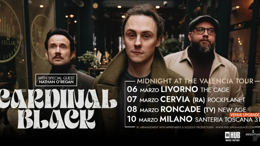 (ANSA) - BOLOGNA, 17 FEB - Dopo il successo del tour nordamericano, con sold out da New York a San Francisco, il trio rock gallese Cardinal Black arriva in Italia con quattro date: il 6 marzo al The Cage di Livorno, il 7 al Rockplanet di Pinarella di Cervia (Ravenna), l'8 al New Age di Roncade (Treviso), il 10 alla Santeria Toscana 31 di Milano. Ad accompagnare la band nei club italiani sarà Nathan O'Regan, la cui musica unisce country, soul e blues. Il tour europeo 'Midnight at the Valencia Tour' celebra l'omonimo album, un mix di rock e blues che ha conquistato il pubblico del Royal Albert Hall e del The Troubadour, oltre a ricevere elogi da star come Slash, Peter Frampton e Joe Bonamassa. Dopo una carriera fatta di falsi inizi, esperienze soliste e perfino una pausa prima del debutto, i Cardinal Black - Tom Hollister voce, Chris Buck chitarra, Adam Roberts batteria - hanno trovato la propria strada con il singolo 'Tell Me How It Feels', che ha scalzato Noel Gallagher dalla classifica Rock di iTunes, segnando l'inizio della loro ascesa internazionale. Il trio porta sul palco un'energia trascinante con brani che oscillano tra intimità e drama epico, assoli di chitarra e groove. (ANSA).