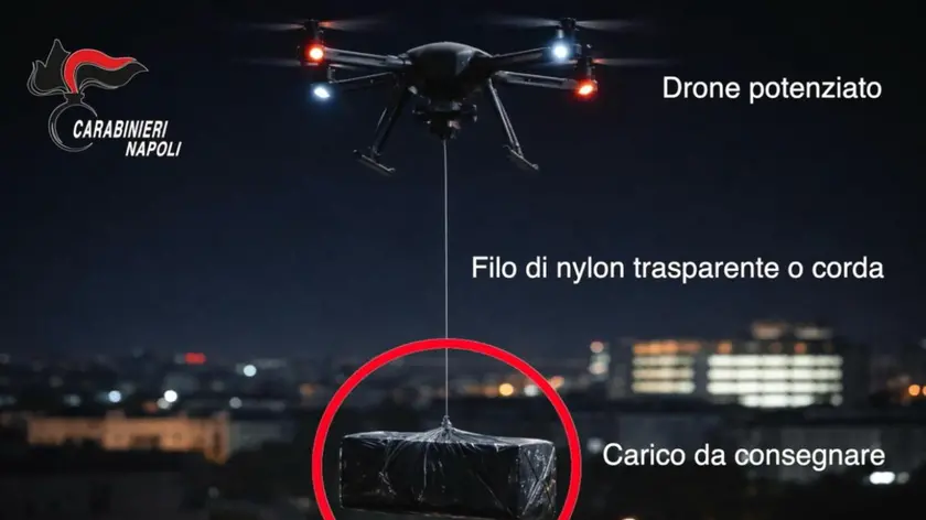 (ANSA) - NAPOLI, 03 APR - Un drone con un filo di nylon al quale era legata una busta contenente tre smartphone, 200 grammi di hashish e circa 4 di crack, destinato ai detenuti del carcere di Poggioreale è stato sequestrato dai Carabinieri a Napoli. Il velivolo è stato individuato nell'area che circonda il carcere, a ridosso del Centro Direzionale. Già diverse inchieste dei Carabinieri, coordinate dalla Dda di Napoli, hanno documentato un sistema di introduzione di cellulari e stupefacenti nelle carceri da parte della camorra attraverso i droni potenziati capaci di volare più in alto del normale e di trasportare carichi appesi con fili trasparenti o contenitori scuri. Tutti elementi funzionali a ridurre visibilità e tracciabilità operativa. Caratteristica comune a tutti i dispositivi è quella di aggirare le no-fly zone e superare limiti operativi ordinari. Determinanti per i clan che hanno intrapreso questo business hi-tech sono i piloti, i cosiddetti "dronisti" che con competenze specifiche rendono possibile la consegna del carico. Secondo quanto ricostruito nelle inchieste della Procura distrettuale e e dell'Arma, si tratta di un ruolo ben remunerato: in un caso si parla di compensi tra 700 e 800 euro per operazione, in altri di 3mila euro a viaggio, mentre in un'intercettazione un pilota avrebbe vantato guadagni fino a 10 mila euro al giorno. E Poggioreale e Secondigliano, in questa prospettiva, non sono soltanto luoghi in cui si registrano sequestri o rinvenimenti. Sono il punto in cui diventa visibile una trasformazione più ampia: uso di droni modificati, piloti specializzati e logistica flessibile raccontano come la camorra stia aggiornando i propri strumenti per superare distanza, muri e controlli, con un salto di qualità che merita attenzione. (ANSA).
