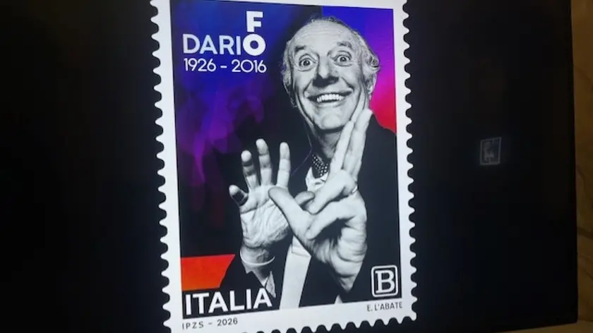 (ANSA) - ROMA, 24 MAR - È stato svelato il francobollo per il centenario di Dario Fo nel giorno in cui prendono il via da Roma le celebrazioni. Emesso il 24 marzo 2026 dal Ministero delle Imprese e del Made in Italy (Mimit), in collaborazione con Poste Italiane, il francobollo appartiene alla serie tematica 'Le Eccellenze del Patrimonio culturale italiano'. La cerimonia del primo annullo filatelico del francobollo commemorativo si è tenuta al Ministero della Cultura alla presenza del sottosegretario alla Cultura Gianmarco Mazzi, della famiglia Fo e fra gli altri dei funzionario del Mimit Marco Gubbini, del Poligrafico dello Stato Luca Sciascia e delle Poste Italiane Roberta Sarrantonio. A rendere ancora più speciale il francobollo è la fotografia iconica realizzata dall'amico Guido Harari, che ha concesso il suo scatto per la realizzazione: un'immagine che è diventata per la Fondazione il simbolo stesso di questo Centenario. "Un piccolo segno che viaggia, attraversa confini e porta con sé una storia fatta di libertà, ironia e responsabilità. Questo francobollo non celebra soltanto un grande artista, ma afferma il valore della cultura come bene comune e memoria viva" sottolinea la Fondazione. La nipote, Mattea Fo, ha ricordato emozionata che la nonna, Franca Rame "era una collezionista di francobolli". All'avvio delle celebrazioni al ministero è stato presentato anche il Comitato Nazionale per il Centenario di Dario Fo che si è insediato il 12 marzo 2026 per decreto ministeriale, con il mandato di coordinare e valorizzare le iniziative dedicate al grande artista su tutto il territorio nazionale. (ANSA).