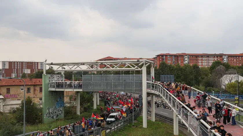 (ANSA) - MILANO, 03 OTT - Sono arrivati rinforzi di Polizia e carabinieri sulla tangenziale est di Milano bloccata dai manifestanti al termine del corteo per Gaza nel giorno dello sciopero generale. Al lancio di pietre contro militari e agenti, questi hanno risposto con i lacrimogeni e in un secondo momento anche con l'uso di idranti per allontanare i gruppi di giovani che, in buona parte a volto coperto, sono indietreggiati lungo la corsia nord. (ANSA).