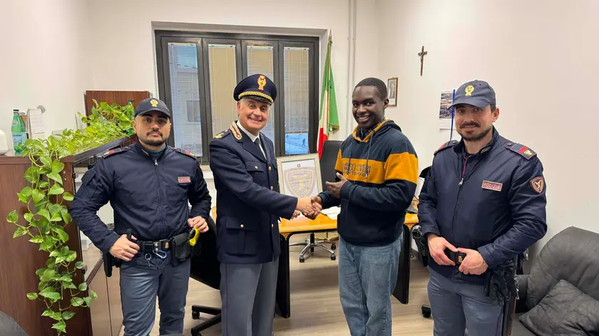 (ANSA) - JESI, 23 GEN - Salva una donna posizionatasi sui binari in stazione a Jesi (Ancona). La Polizia consegna un attestato "per il suo senso di altruismo" a un giovane italiano, David, con i genitori originari della Nigeria e residente in provincia di Ancona, che nella serata dello scorso 16 gennaio, mentre si trovava in stazione a Jesi (Ancona) ha notato una donna che, scesa dal marciapiede, si era posizionata al centro dei binari. Il giovane ha contattato la Polfer che, a sua volta, ha allertato Rfi disponendo il blocco della circolazione ferroviaria e, contestualmente, ha indicato a David la condotta da assumere. Il giovane, aiutato anche da altre persone presenti in stazione, è riuscito a mettere in sicurezza la donna e a scongiurare una tragedia. Michele De Tullio, dirigente del compartimento di Polizia Ferroviaria per le Marche, l'Umbria e l'Abruzzo, ha voluto incontrare il giovane, evidenziando "l'altissimo senso civico dimostrato e il coraggio nel mettere a repentaglio la propria incolumità per trarre in salvo una vita umana". David ha affermato di aver soltanto messo in atto ciò che al momento sentiva di fare e ha espresso il desiderio di esporre l'attestato ricevuto insieme ai trofei che conquisterà nella sua carriera di pugile. (ANSA).