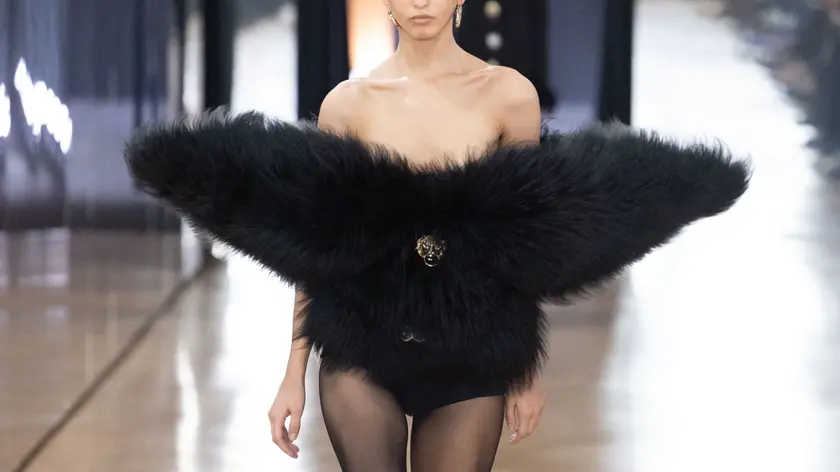 (ANSA) - MILANO, 27 FEB - Venezia è la musa della collezione Blumarine disegnata da David Koma per il prossimo inverno, che ha sfilato questa mattina a Milano. Al centro della proposta, sensuale e barocca, con calze autoreggenti a punteggiare la maggior parte dei look, la rosa, emblema della maison, proposta in un'inedita chiave dark come evidente ricamo, stampa nera su bianco o applicazione metallica su abiti e pantaloni. In passerella gonne corte corte, calzoni di pelle aperti sul fianco, scenografiche cappe di pelliccia, lunghi abiti di chiffon con plissé, volant e strascico, mini dress a palloncino, tute seconda pelle in lycra e pizzo, portati con alti stivali stringati. Un look quasi solo da sera, da vera diva barocca che non è ispirato tanto a una persona ma a una città: "sono circondato da dive da una vita, ma se Venezia può essere una diva, é lei - dice Koma - la mia musa". (ANSA).