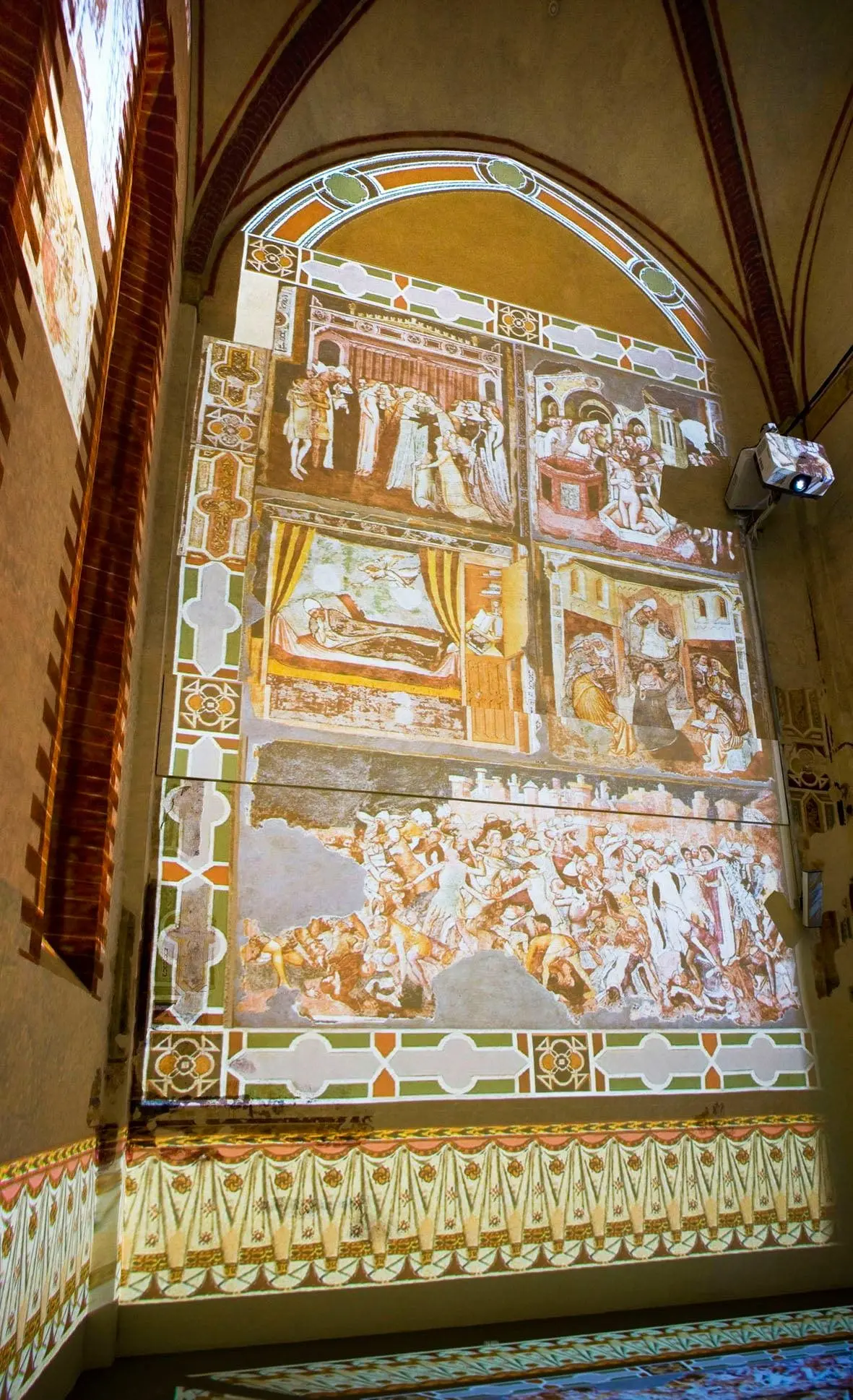Proprio allora, nel 1882, l’abate Luigi Bailo scoprì in una cappella le Storie di Sant’Orsola affrescate da Tomaso da Modena e, con mezzi precari e tra l’indifferenza generale, ne attuò lo stacco, salvando oltre centoventi metri quadrati di affresco dalla distruzione. Oggi il ciclo è conservato al Museo di Santa Caterina, mentre nell’abside ricostruita di Santa Margherita una proiezione ne ricompone virtualmente la collocazione originaria.