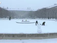 Parigi, la neve imbianca i giardini del Palais-Royal