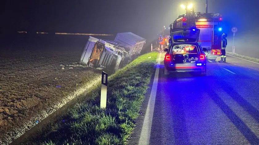 Incidente a Morsano al Tagliamento dieci minuti dopo la mezzanotte in via Udine lungo la strada provinciale 40, dove un autoarticolato che trasportava circa 4 mila polli è finito fuori strada, ribaltandosi in un campo.